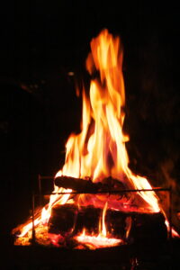 いつものキャンプ場。普段は拾った枝を燃やすが、
