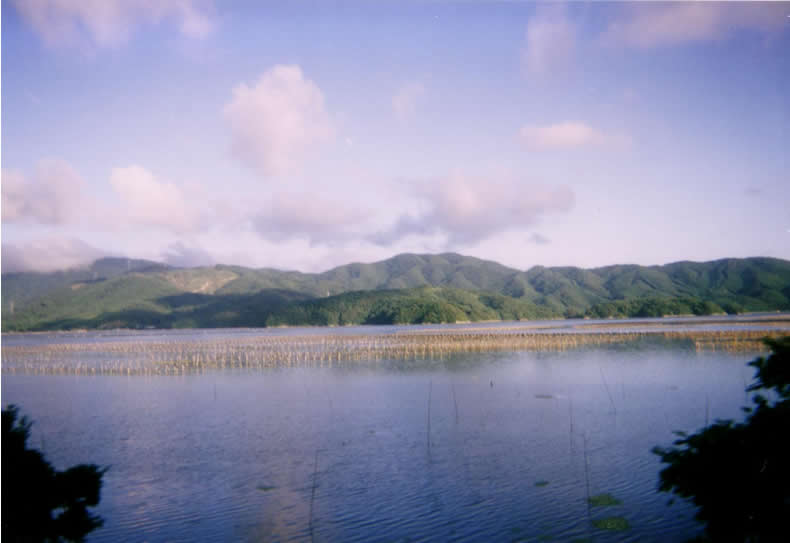 万石浦(カキの養殖をしている)
